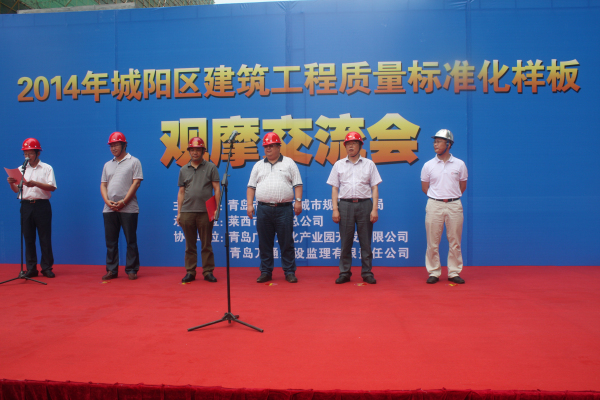 今天上午,建筑工程质量标准化样板观摩交流会在一公司于全志项目部施工的万科玫瑰里工程召开。青岛市质监站总工程师崔浩,城阳区建设局副局长焦萌等有关领导到会,公司总经理赵成福在会上作了介绍发言,全市开发、监理、施工单位1000余人参加了观摩会。