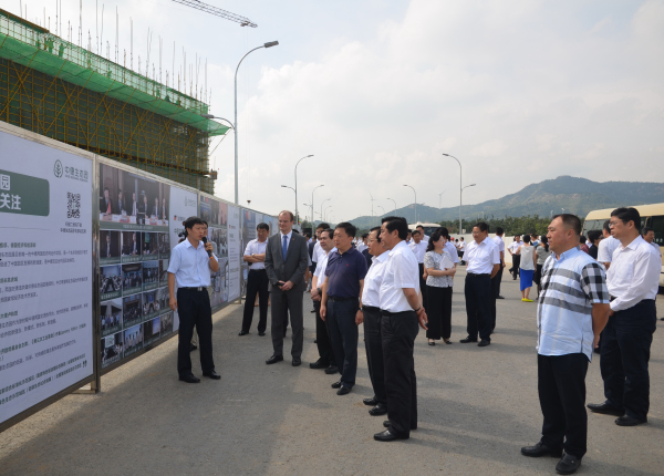 9月1日,青岛市市长张新起带领青岛七区、五市有关领导一行100多人在中德生态园管委赵士玉主任陪同下视察了我公司王慎平项目部施工的德国企业中心项目绿色施工现场,张市长详细了解了工程规划和建设情况。公司董事长孙涌陪同视察。