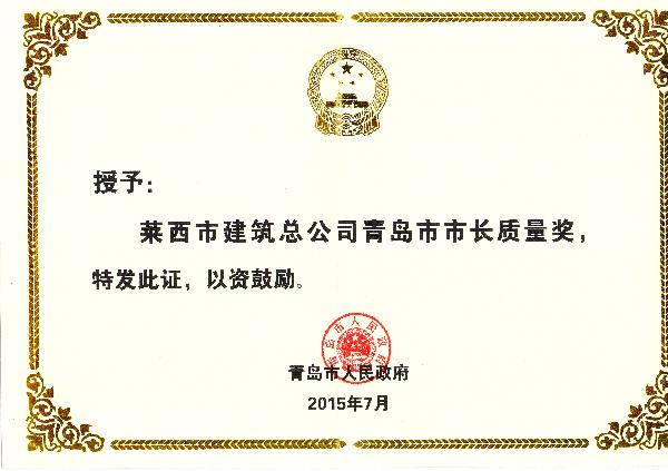 7月21日,青岛市质量工作会议在市级机关会议中心召开,会议的主要议题是表彰市长质量奖获奖组织和个人,传达首届中国质量大会精神,总结近年来全市质量工作经验。市委常委、副市长王广正,市政府副秘书长王卫平,市质监局局长徐国启在主席台就坐。我公司董事长孙涌同志出席会议并领奖。