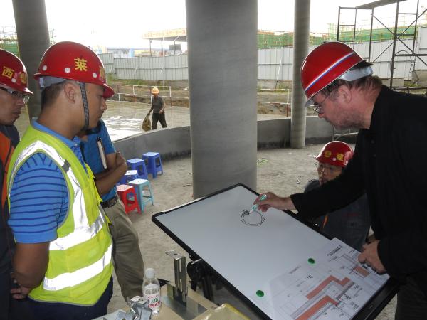 专家对于施工现场的外墙保温,穿墙埋管,窗体及幕墙安装施工中各细部的防水、保温、隔气等做法进行了详细的施工指导,避免了工程装饰装修过程中出现错误做法。通过此次培训活动,参加人员深入了解被动式建筑的施工及做法要求,为以后的被动房施工奠定了坚实的基础。
