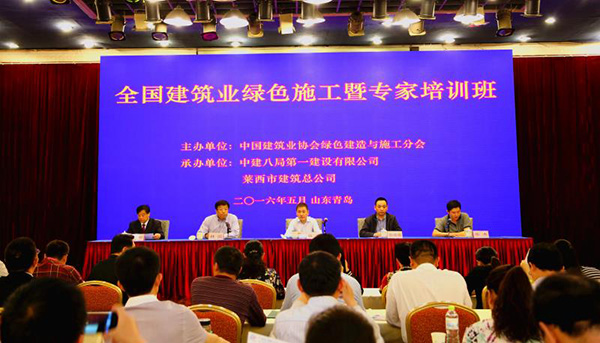 2016年5月11日,由中国建筑业协会绿色建造与施工分会主办,我公司承办的全国建筑业绿色施工暨专家培训班在青岛海滨花园大酒店举行。公司总裁赵成福同志应邀出席了开班仪式。副总工李承霖同志介绍了我公司开展绿色施工的经验。会后到我公司施工的青岛大学附属医院东区综合病房楼工程进行了现场观摩。