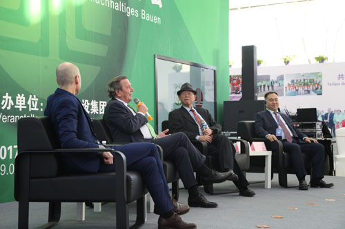 德国前总理施罗德先生应荣华建设集团和中德生态园管委的邀请于2月8日开始对青岛为期四天的访问之旅,出席由我集团主办的中德可持续建设论坛,并为集团的被动房及装配式产业基地揭牌,集团董事长孙涌同志全程陪同。集团总裁赵成福、副总裁张行良、总裁助理周兵一、副总工程师杨自统、三公司总经理于永刚、中德联合被动房有限公司总经理聂建卫一起参加。