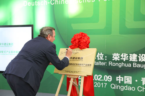 施罗德先生和董事长孙涌先生共同为集团“被动房及装配式产业基地”揭牌
