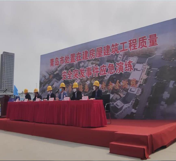 2020年5月22日,青岛市处置在建房屋工程质量安全突发事件应急演练在崂山区银丰九玺城项目顺利开展。本次演练由青岛市住房和城乡建设局主办,崂山区住房与城乡建设局协办。市住建局刘玉勇副局长、市应急管理局于法卫副局长、市住建局安全处孙宪阁处长、市安监站杜润峰站长等领导出席。本次演练全市出动23支应急队伍,25辆抢险工程车辆,390多名救援人员,集团公司组队参加。