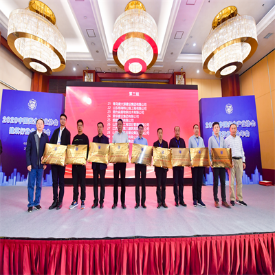 会上,荣华建设集团有限公司荣获2020年中国安全产业建筑行业安全生产标准化企业;六公司张少杰项目部承建的海信国际中心项目荣获中国安全产业建筑行业安全生产标准化项目;四公司徐德峰经理荣获“2020年中国安全产业建筑行业安全生产标准化带头人”称号。集团公司周兵一副总裁及六公司张少杰经理分别上台领奖。