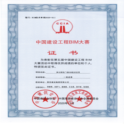 中国建设工程BIM大赛由中国建筑业协会主办,在行业和社会具有较高知名度,参赛作品充分反映了国内建筑领域BIM应用的最高水平。经过初审、复评、综评和专家评审委员会审核,集团的参赛作品从千余项参赛成果中脱颖而出,喜获两奖。