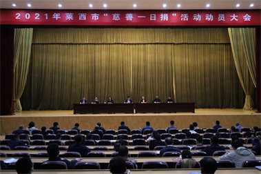 5月14日,莱西市“慈善一日捐”活动动员大会在莱西市委党校会议中心召开。莱西市委副书记张升山、市人大常委会副主任刘莉、副市长丁朝霞、市政协副主席赵彦军参加。莱西市慈善总会会长王仁臣对2019年“慈善一日捐”资金使用和2020年疫情捐赠情况做了全面介绍。