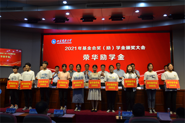合作发展处处长、基金会副理事长、秘书长王晓东宣读了《关于表彰2021年度“荣华奖学金”获奖学生的决定》,与会领导为获奖学生颁奖并合影留念。获奖学生代表表达了对荣华建设集团和学校的感激之情,表示会再接再厉,再创佳绩。