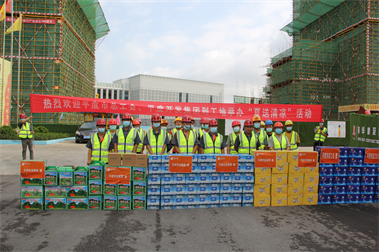 夏日送清凉,关怀润人心。2021年8月6日,平度市总工会联合平度市城市开发集团有限公司等一行“夏送清凉”车队来到我公司施工的“平度新旧动能转换产业园”项目部,看望慰问奋战在施工一线的建筑工人,在炎炎夏日给他们送去清凉和关怀。项目部经理李令震对平度市总工会及平度市城市开发集团一行领导的到来表示欢迎和感谢。 慰问现场,青岛市总工会及平度市城市开发集团给工人送来了数十箱纯净水、西瓜、饮料等防暑降温食用品。平度市总工会代表人员亲切叮嘱大家在夏日工作中一定要注意防暑,牢记高温季节施工安全注意事项,合理安排作息时间,注重劳逸结合,并要求项目部要着力改善高温一线作业职工的生产、生活环境,要有预防和控制高温中暑的措施,防止高温作业引发的各类事故,切实保障广大职工的生命安全和身体健康,让职工安全度夏、清凉度夏。 项目部经理李令震说:感谢平度市总工会及平度市城市开发集团领导能够想着我们、关怀我们,我们心里很感动,我们将以更好的状态战高温、斗酷暑,发扬集团公司“一个家庭、一所学校、一支军队”的团队精神,立足岗位做好本职工作,在确保安全生产的前提下,保质保量按期完成建设任务,为建设美丽幸福平度做出我们应有的贡献。