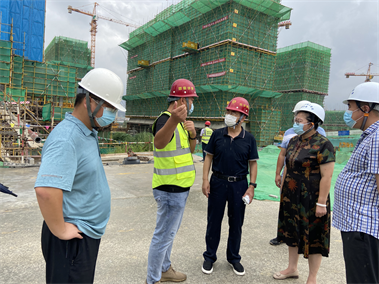 2021年8月5日上午,烟台市住建局副局长林涛、芝罘区住建局副局长孙宏伟、建设服务中心主任姜玉振及各科室科长来到三公司王慎平项目部施工的龙湖春江天玺工程,对该项目疫情防控、安全生产及扬尘治理等情况进行检查和指导。