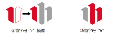 以去繁从简的设计理念将“荣华”的首字母“r、h”融合,“r”镜像后使得整体更加和谐统一。