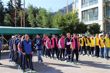拓展训练一开始,全体成员在教练的带领下破冰开营、组建队伍,每队都制定了气势十足的队名和口号。拓展训练全程以对抗赛的形式,分别展开了旱地冰壶、驿站传书、重走长征路、有轨电车、七巧板等项目,每位队员之间相互激励、群策群力、全情投入,比赛过程精彩纷呈,笑声不断,真正地赛出了水平、赛出了友谊、赛出了欢乐。比赛之余,还安排了农家宴、文艺晚会、自由登山等休闲活动。