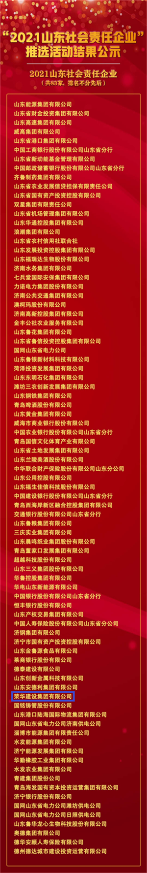 经过以上多个环节评审,我集团公司被推选为“2021山东社会责任企业”,这是在集团公司的领导下,企业迈向高质量发展,推进社会责任担当的具体体现,也是对山东企业发展质量、生命力,以及企业家精神的一次检验。