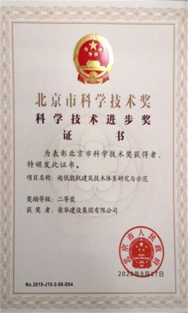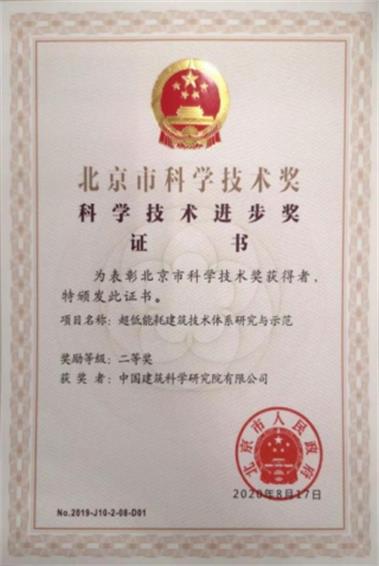 本次奖励大会获奖奖项包括北京市科学技术奖人物奖11项和北京市科学技术奖成果奖154项。我集团联合中国建筑科学研究院有限公司、北京市建筑设计研究院有限公司等完成的《超低能耗建筑技术体系研究与示范》获得北京市科学技术进步奖二等奖。